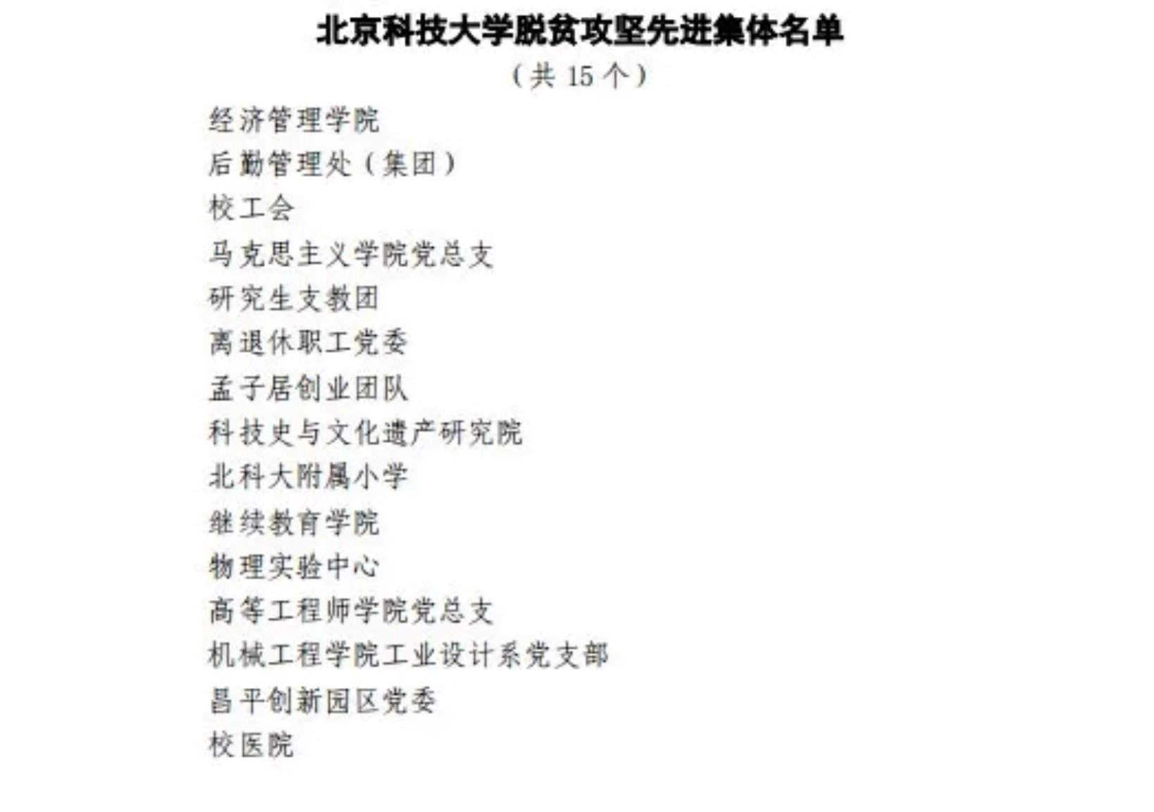 成绩的背后是一批又一批北科人的责任担当与辛勤付出,他们在脱贫攻坚的战场上留下了美丽的身影,在脱贫攻坚的历史上书写了壮美的篇章。