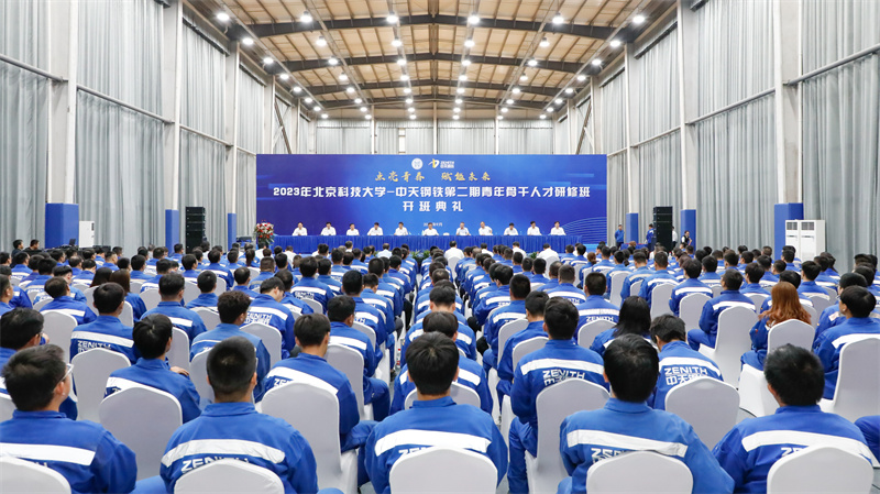 董才平表示,创新是引领发展的第一动力,人才是保持核心竞争力的第一资源。2016年起,中天钢铁就与北科大在人才引进、人才培养、科研创新等方面开展校企合作,企业拥有北科大优秀校友70多名,取得了全国冶金科学技术一等奖等重要技术成果。中天钢铁进入高质量发展阶段,迫切需要打造复合化、年轻化、知识化的人才队伍,既要有“顶天立地”的尖端科研人才,也要有“铺天盖地”的工匠技术人才,希望青年骨干们边充电学习边谋划工作新思路,开阔眼界、创新作为。
