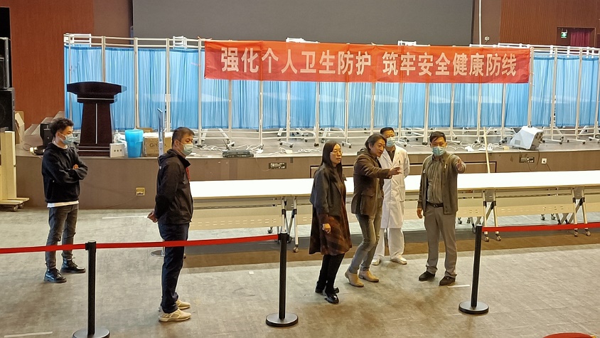 接种人员在文娱中心南门入场排队等候,首先在等候区领取并填写知情告知书,明确接种后可能产生的不良反应及有关注意事项;随后接受医护人员的健康询问,判断能否正常完成接种;而后进入接种区进行接种,在留观区等候30分钟后经本人签字确认后离开,全流程实行闭环管理。