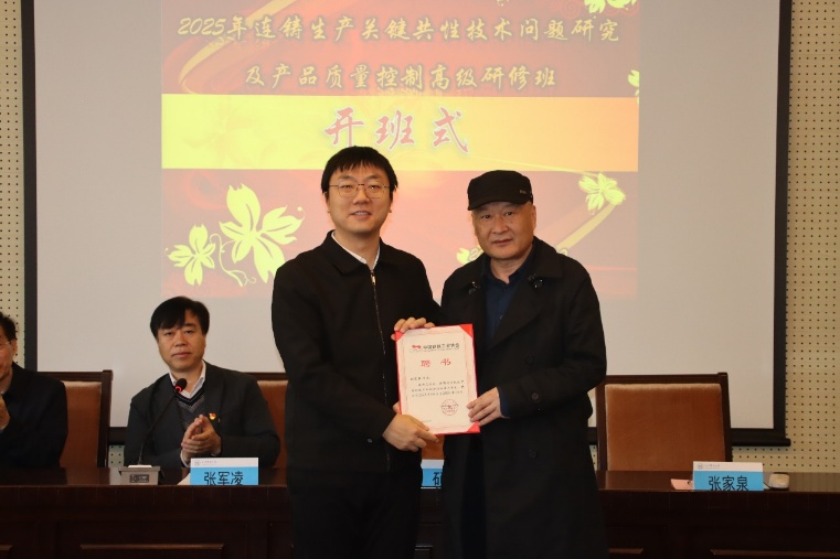 在开班式上,贾硕为张家泉教授颁发了“行业培训专家荣誉聘书”,以表彰其在钢铁工业教育培训领域所做出的杰出贡献。