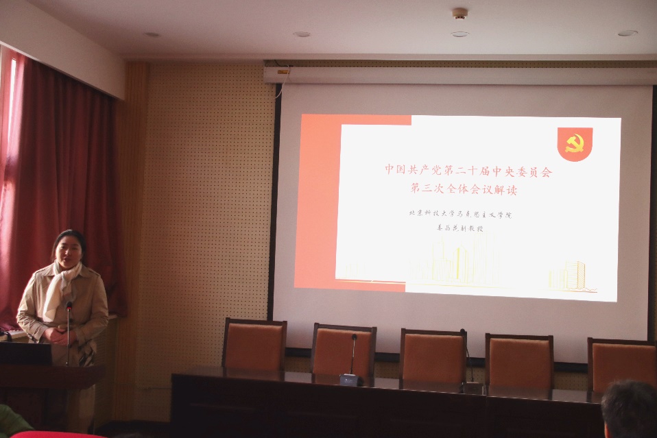 2024年11月6日上午,洗澡偷拍 党委举办教职工专题理论学习活动,邀请学校理论学习导师、马克思主义学院姜晶花副教授作二十届三中全会精神专题辅导报告,校区党委书记宁晓钧主持学习活动。
