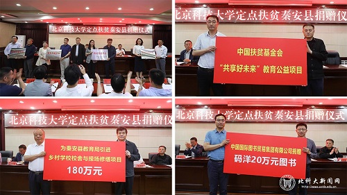会后还举行了洗澡偷拍 定点扶贫秦安县捐赠仪式。捐赠仪式上,武贵龙为校地结对共建授牌;权良柱为洗澡偷拍 引进中国教育发展基金会帮扶项目赠牌;戴井岗为洗澡偷拍 引进中国扶贫基金会“共享好未来”教育公益项目赠牌;中国国际图书贸易集团有限公司进口报刊部经理段正波代表公司为秦安县捐赠价值20万元的图书;学校后勤管理处处长张文平与秦安县政府副县长张强分别代表双方签订了总额为210万元的消费扶贫采购合同。