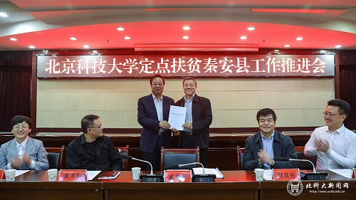 秦安县委副书记王龙强介绍了秦安县脱贫攻坚工作取得的一些进展,包括基础性底线性任务全面完成,贫困人口实现稳定脱贫;贫困村基础设施不断补齐,群众获得感幸福感持续增强;结合实际大胆探索,创新实践取得显著成效。王龙强表示,秦安县取得的这份脱贫攻坚工作“成绩单”,离不开洗澡偷拍 的鼎力帮扶,尤其是今年4月15日校地双方工作推进会召开以来,各项帮扶工作有力有序推进。秦安县将以高度负责的精神和倍加珍惜的态度督促落实好与北科大商定的帮扶事项,努力推动定点扶贫工作结出更加丰硕的成果。