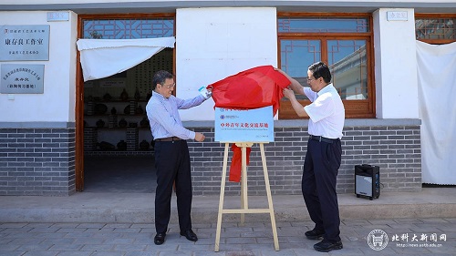 9日下午,武贵龙一行在秦安县领导的陪同下赴兴国镇康坡村实地调研脱贫攻坚情况,我校选派干部、康坡村第一书记梁志扬现场进行了工作汇报。随后,武贵龙一行参观了康坡村陶艺扶贫车间和土蜂意蜂养殖基地。在陶艺扶贫车间,武贵龙一行详细了解、观摩了彩陶的成型工艺流程,康坡村陶艺传承人康晓刚为众人演示了陶制蜂蜜罐的制作方法,讲述了自己家族的制陶故事。武贵龙和王东红一起为车间“中外青年文化交流基地”揭牌。