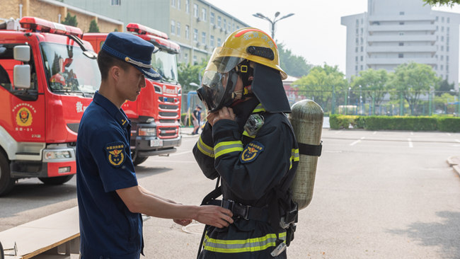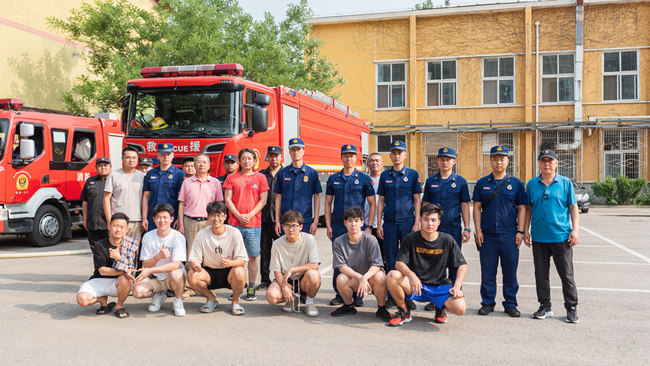 实操结束后,师生们进行了消防装备体验,并参观了消防车辆,听消防指战员讲解车载设备的使用功能。最后,在场师生员工与消防指战员合影留念。